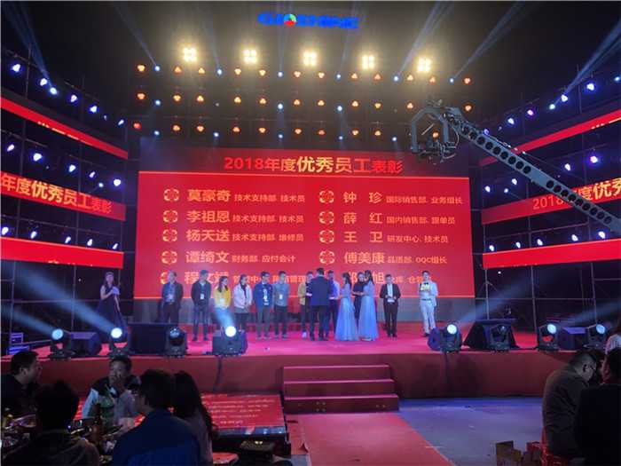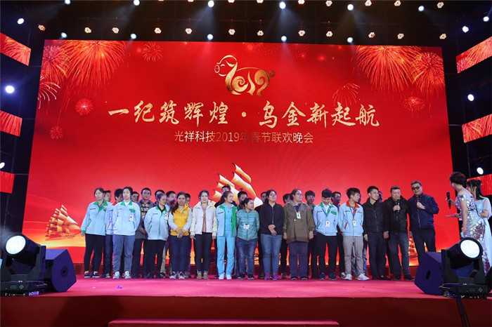 2019年1月24日深圳市光祥科技股份有限公司“一紀筑輝煌 烏金新啟航”年會盛典在公司廠區(qū)舉行。年會上,全體員工和供應(yīng)商、合作伙伴聚集一堂共享盛典。