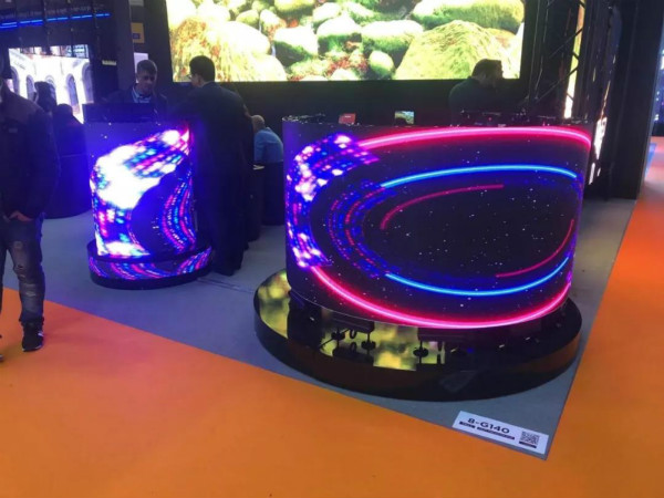 為方便全球采購商的對比、選擇,本次展會,光祥曲面屏CURFACE系列與圓柱屏COLUMN系列同時展出。CURFACE系列單箱體可作S形彎曲,多箱體能自由組成多個創意屏體。