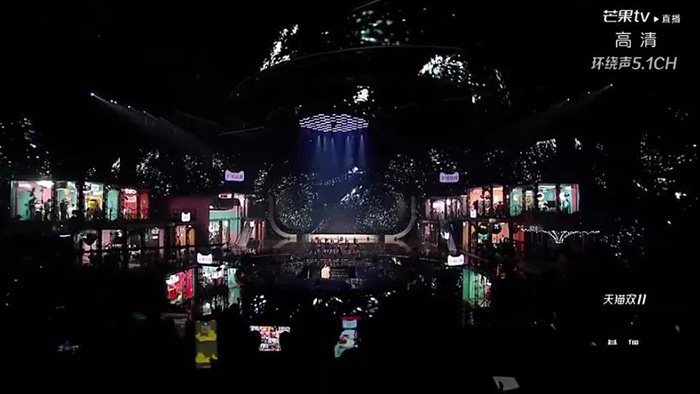湖南衛視搬出最強舞臺陣容,天貓搬出最火直播間,光祥搬出頂尖的科技,17個直播間被搬上舞臺。17個直播間,17塊小型LED顯示屏,連接舞臺主屏。藝人自由穿梭于各大直播間,與主播的互動,全部實時呈現觀眾眼前。