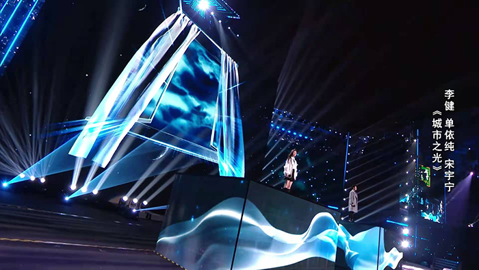 當(dāng)晚,江城飛歌,長(zhǎng)江兩岸星光璀璨。1250㎡光祥L(zhǎng)C系列冰屏、224㎡光祥戶外P3系列顯示屏,搭載升降舞臺(tái),矩陣分列,激情演繹荊楚大地的清奇、靈動(dòng)。