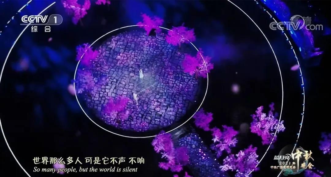 與天空交相輝映的是500m2光祥 AR 4.81系列地屏,在星月湖湖面上佇立起一個360°的環形舞臺。天上月和水中月遙相呼應,點點繁星和“北斗七星”相映成趣,古今轉換,虛實結合。全景式舞臺在視線范圍內沒有盲點,亭臺樓閣、小橋流水、荷塘月色,一輪圓月交相輝映,呈現出一場唯美浪漫與地方特色兼收的視覺盛宴。