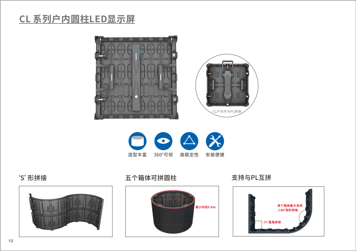 舞臺秀兩側使用光祥PL系列LED顯示大屏,作為光祥今年推出的新品,首次出現在觀眾的視野中,全天輪播各大廠家介紹視頻,細膩的畫面顯示,為各家宣傳助力。PL系列不僅可做直屏,更可與CL、CF曲面屏系列互拼,實現創意直角拼弧形的造型,更加滿足主流市場需求,適合打造沉浸式視覺舞臺。