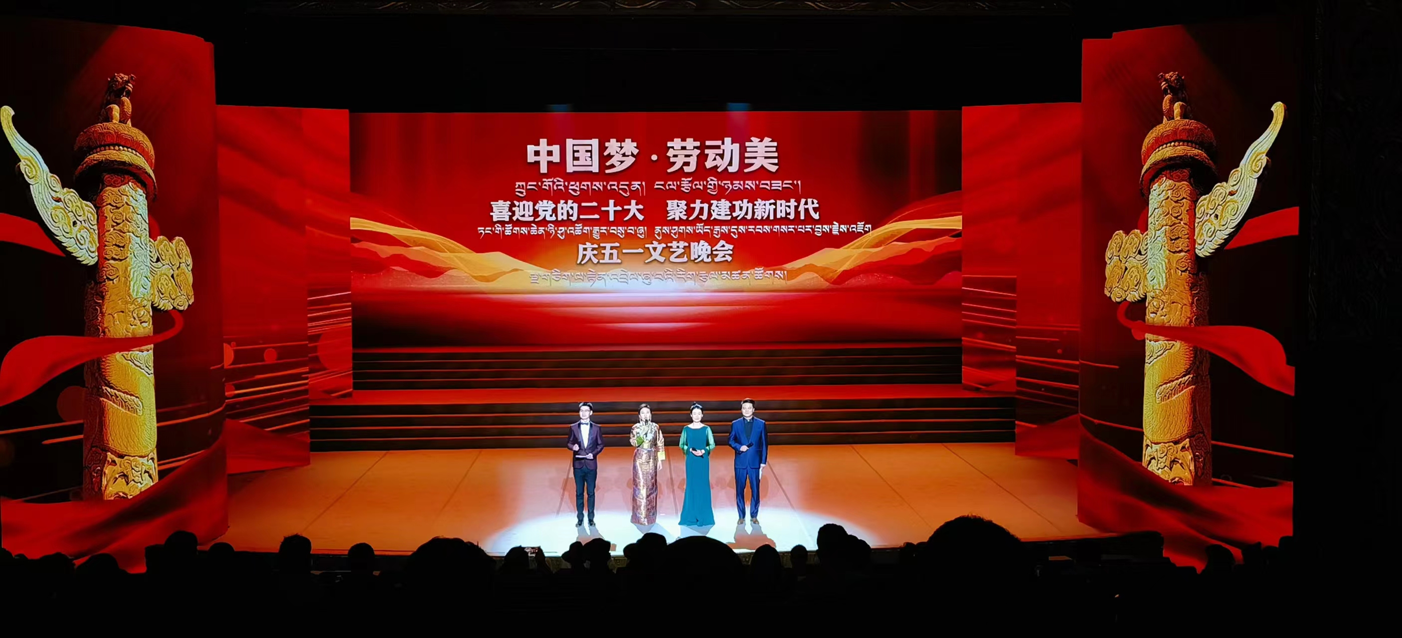 4月29日晚,藏戲藝術中心劇場內歌舞飛揚、掌聲歡騰,來自各行業各領域的勞動者們歡聚一堂,喜迎“五一”國際勞動節的到來。
