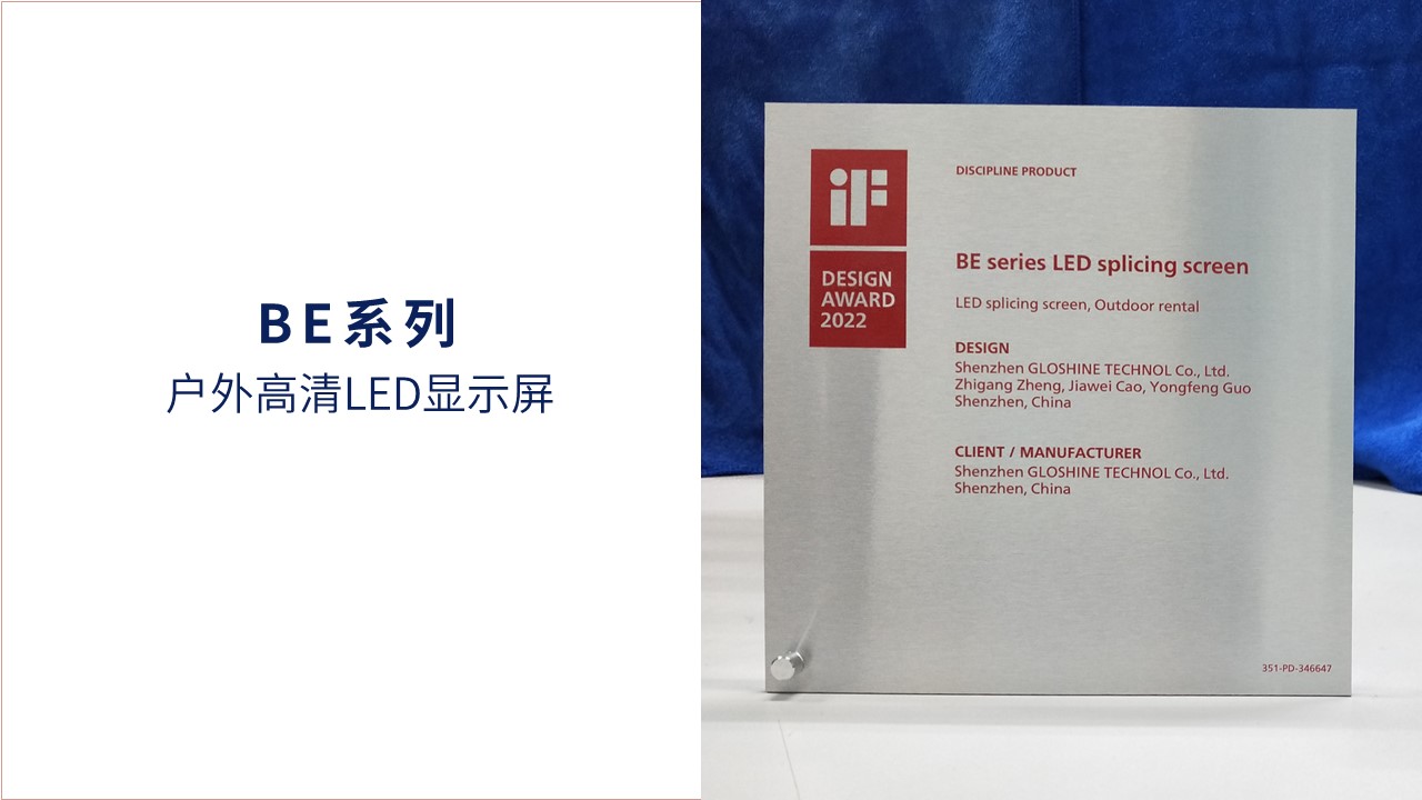 感謝德國“iF產品設計獎”對光祥品牌CB系列和BE系列產品的認可,未來光祥科技將繼續堅持科技創新,發揮產品設計專長,繼續研發、設計、制造更多優秀的全彩LED顯示屏,為應用行業提供更多更輕便、穩定性更高、顯示效果更好的產品,為創建更美好的世界貢獻微薄之力。