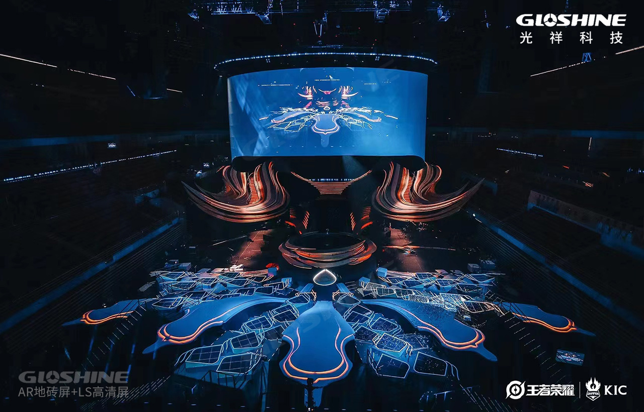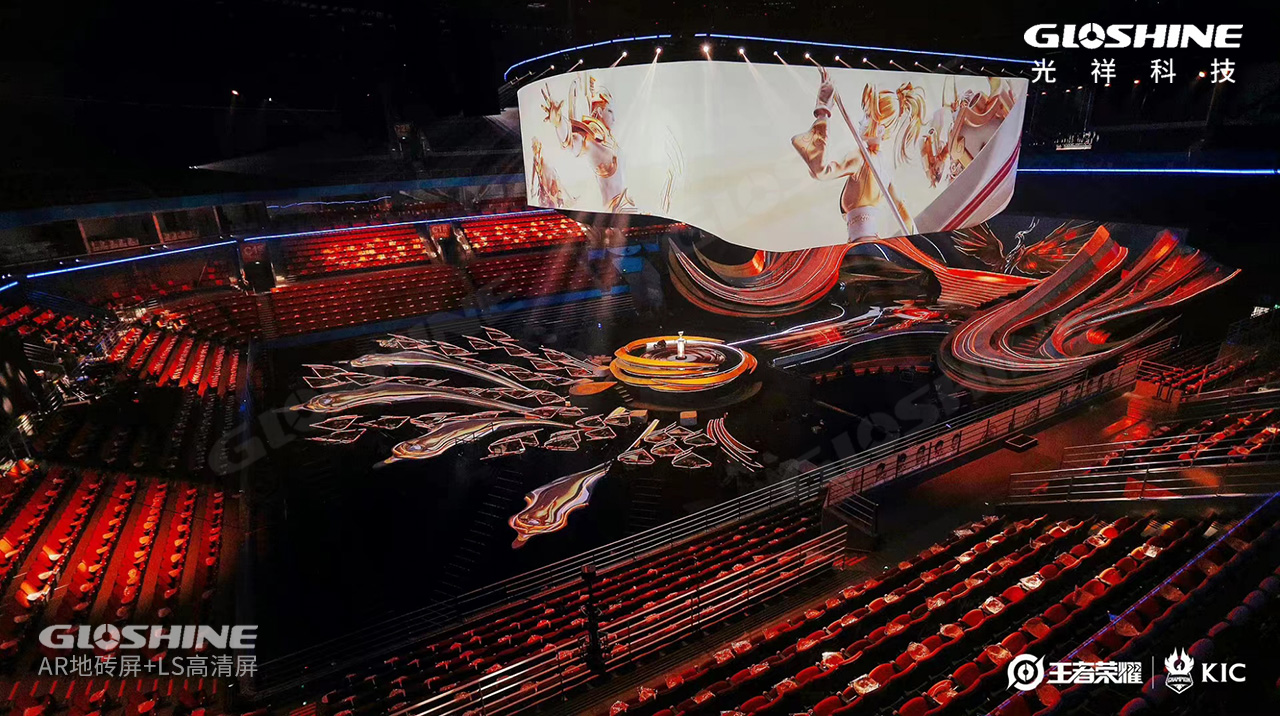 昨晚的春繭體育館異常火熱,世界最優秀的兩大王者戰隊及粉絲們熱情似火,點燃全場。主舞臺如展翅翱翔的鳳凰,焰火四射,時而又冷艷、蓄勢待發。這是光祥AR系列地磚屏帶來的視覺體驗,炫麗奪目。