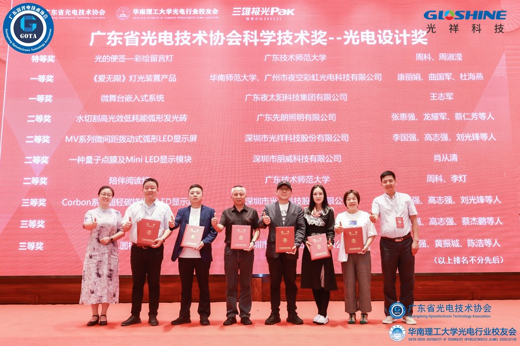 “廣東省光電技術協會科學技術獎”由廣東省光電技術協會申請報送廣東省科學技術獎評審委員會辦公室批準設立,含技術發明獎、科技進步獎、光電設計獎、光電工程獎、卓越人才獎5大子獎項。其中,“卓越人才獎”由光祥科技創始人、董事長張現峰等六位行業資深專家獲得。