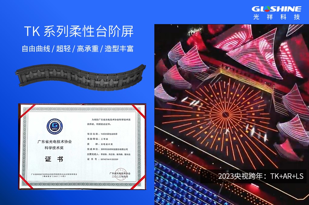 此次共有10個產品獲得2022年度“光電設計獎”,光祥MV系列微間距撥動式弧形LED顯示屏獲得該項二等獎,TK系列柔性臺階屏、CL圓柱屏、Carbon系列超輕碳鎂組合LED顯示屏包攬“光電設計獎”三等獎。