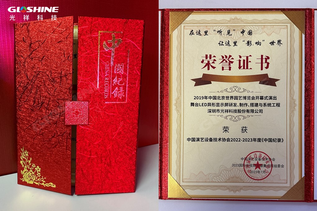7月17日,中國演藝設備技術協會國際演藝高新技術論壇在深圳會展中心茶花廳舉行,期間演藝設備技術協會2023年的主推項目《中國紀錄》宣講開幕,會上向各個獲獎項目主體企業頒發《中國紀錄》榮譽證書。光祥科技憑借“全國LED顯示屏應用最多的舞臺——2019年北京世界園藝博覽會”項目入選《中國紀錄》年度典籍。