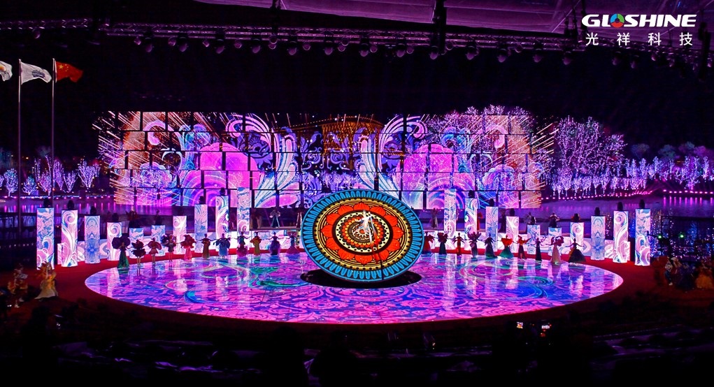 2019年4月28日,中國北京世界園藝博覽會開幕式在北京世園公園演藝中心隆重舉行,光祥科技應用3000平方米的LED顯示屏,在湖光山色間打造大型光影藝術表演舞臺。首創升轉異形地屏、舞臺升降圓柱屏等,是迄今為止全國大型演出舞臺LED異形顯示屏應用最多的項目。