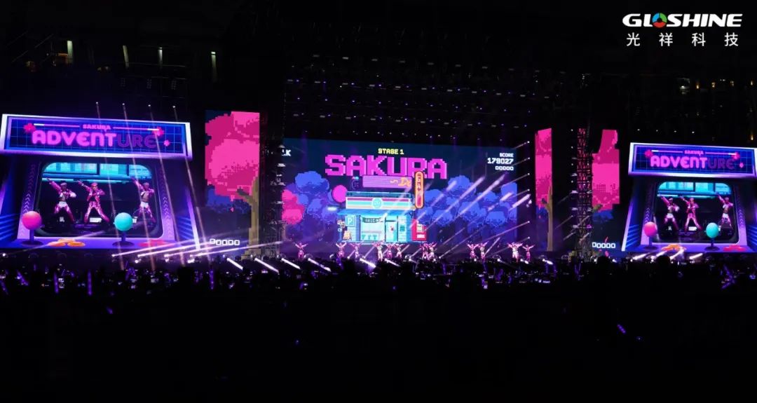 這是由光祥VA系列黑燈透明屏帶來的超感觀視覺享受。它以超輕薄、全防水、高通透率、高穩(wěn)定性、高還原度稱霸舞臺,自2019年亞洲文化嘉年華起,廣泛應用于各大戶內(nèi)外舞臺、展覽展示等,今年就有近300場明星演唱會使用了VA大屏。