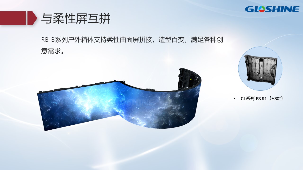 RB-B系列戶外高清LED顯示屏,箱體輕巧靈活,造型豐富,支持直角、立方柱、立方體、弧形拼接等,顯示高清細(xì)膩,色彩還原度高,適用于各種大型活動(dòng)、展覽展示、會(huì)議論壇等場(chǎng)景,是一款性價(jià)比極高的LED顯示產(chǎn)品。